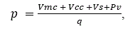 donde Vmc es el valor de las materias primas consumidas en la producción, Vcc es el valor del capital gastado en la producción, Vs es el valor pagado en salarios, Pv es el excedente para cubrir las necesidades del dueño o dueña de la empresa y q es el número de unidades del producto. De esta manera, el valor de la producción es V =p*q