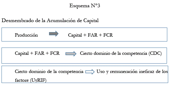 The article intends to give continuity to the theoretical proposals made in two previous articles, in which the existence of a relationship between the process of capital accumulation, the inequity in the distribution of national income among the factors of production, and therefore the imbalance in the use of these. Thus, the objective that is proposed to analyze and discuss this work is the process of capital accumulation itself to discover the implicit relationships that determine it, and that lead it to generate a structure of factors of production's remuneration that does not correspond with the needs and resources of the population. The accumulation of capital is then proposed as a process that results in the formation of a Redundant Accumulation Fund and a Redundant Consumption Fund that weaken the conditions of the free market, and what we call the "endogenization" of competition. It concludes with some ideas to avoid that the productive process is oriented towards the creation of said Funds and to develop a more efficient and effective economic structure.