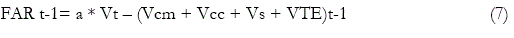 El aumento del FAR, por tanto, se puede llevar a cabo con el aumento del precio del producto en el mercado (mark up) y el aumento del volumen de producción para aumentar el valor Vt, con la reducción de los costos de producción o costos primos (Vcm + Vcc), con la reducción del coste del trabajo Vs o con la merma del Fondo de Consumo Redundante, o finalmente, con el aumento del parámetro 0≤ a <1 reduciendo la parte del excedente de explotación EX destinado al FAR. Mientras que la reducción de los costos de producción Vcm+Vcc, está limitada por el hecho de que incorporan en su precio un plusvalor correspondiente a toda mercancía. Desde que Vt = p t *q t, y pt =Vt/q_t el precio de producción o precio pt que se ofrece a la venta el producto, será una función directa del valor de Vmc t-1, Vcc t-1, Vs t-1 y FAR t-1, e indirecta de la cantidad qt producida.