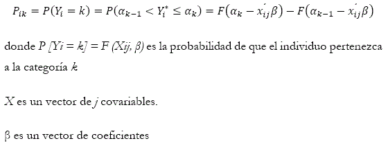 Usando las ecuaciones anteriores estimamos un modelo probit multinomial ordenado para estimar la oferta laboral por horas de trabajo para los distintos rangos de tiempo, de manera similar al modelo planteado y estimado por Ermisch y Wright (1993). Se usa el probit ordenado porque la variable dependiente (rangos de tiempo de trabajo) asume cinco categorías ordenadas de menor a mayor, el propósito del modelo es estimar la probabilidad de que una observación con características particulares caerá en una de las cinco categorías. Nuestra especificación del modelo es la siguiente:
