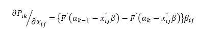El efecto marginal de un aumento en una variable independiente Xj sobre la probabilidad de seleccionar alguna alternativa k es: