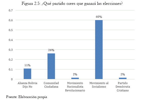 Los resultados están enfocados en presentar cuáles son los temas que despiertan más interés en el segmento de jóvenes bolivianos estudiado, cuál es la opinión que tienen ellos respecto a estos temas, y si existe una coincidencia entre lo que demandan y lo que las organizaciones políticas proponen.