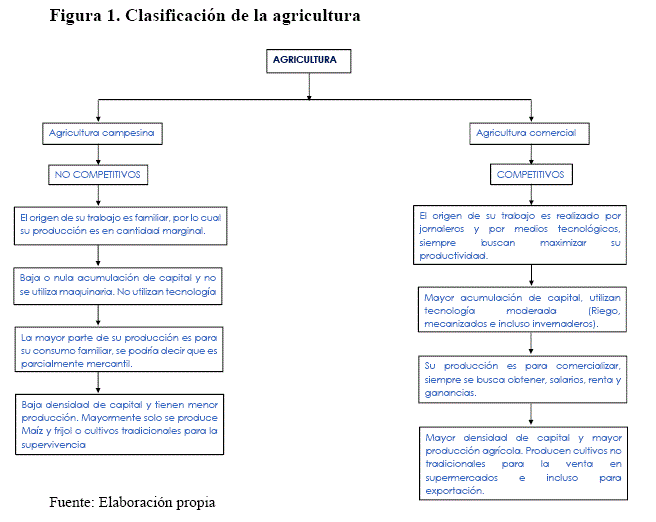 Es de notar que la agricultura comercial se asocia a la competitividad, mientras que la campesina con la poca o nula competitividad. Esta situación está ligada al uso o no de la tecnología agrícola. La importancia de la tecnología estriba en que permite una intensificación de la agricultura pasando de economías de subsistencia a otras donde predomina la lógica comercial (Berengue, et al., 2012). El costo de la tecnología es inalcanzable para los pequeños productores, aunado a la incertidumbre de su efectividad por el impacto de otros factores como el tipo de suelo, extensión de sus tierras y acceso a mercados. Según Hernández y Trivolli (2012) se requiere una política de desarrollo enfocada a la pequeña agricultura familiar y según la escala, que introduzca tecnología adecuada a la producción para evitar frenar el desarrollo y desincentivar la innovación.