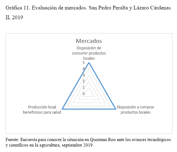 En cuanto a los mercados locales, los ejidatarios encuestados están totalmente dispuestos a consumir y comprar los productos agrícolas locales porque saben que son de ellos mismos. También, consideran que el consumo de estos productos es totalmente beneficioso para la salud porque tienen la certeza de saber que están en buen estado.