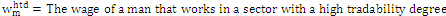 Making the same analysis but with tradability degrees it is found that the higher tradability degree a sector has the smaller the gap will be. As it is found that the gender wage gap sectors with a high tradability degree is different from the same gap on sectors with a low tradability degree.
