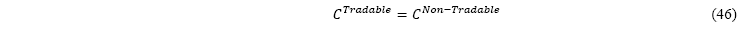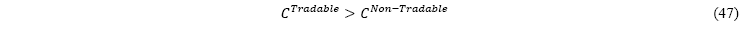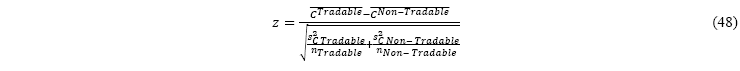 The result presented in equation (48) is under the critic value at 10%. Thus the null hypothesis cannot be refused, thus the unexplained wage gap between tradable and non-tradable sectors is the same.
