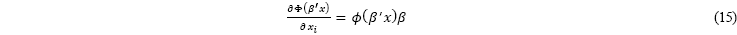 Por otra parte, al igual que en los modelos binarios convencionales, los coeficientes estimados no cuantifican directamente el incremento en la probabilidad dado un cambio marginal en una variable independiente, por ello es necesario realizar el cálculo independiente de los efectos marginales en un punto. Dado el valor esperado condicional,