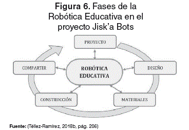 En el contexto boliviano, una de las experiencias desarrolladas es el proyecto Jisk'a Bots que consiste en la construcción de robots pequeños (a escala) para construir conocimiento en diferentes áreas, por ser aplicables a prácticamente todas las disciplinas, desde la historia, hasta la física, pasando por la matemática y la programación. En la Figura 6 se muestran las fases por las se atraviesa cuando se encaran este tipo de proyectos.