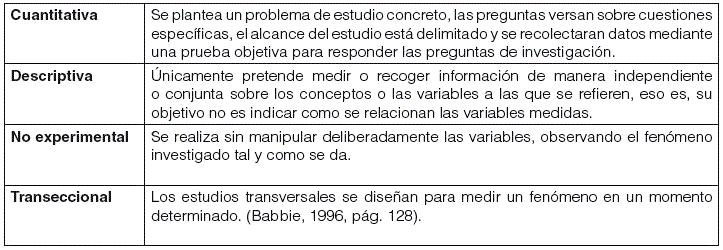 Se eligió este alcance, ya que va más allá de la descripción de fenómenos que buscan responder a las causas de los eventos físicos o sociales. Explica por qué ocurren los fenómenos y en qué condiciones se dan estos. (Cf. Barrantes, s.f., 132).