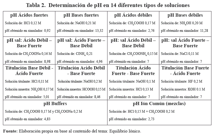 La investigación sobre la validación del Simulador Químico para el tema Equilibrio Iónico: Ácido - Base correspondiente a la materia de Química General se realizó procedimentalmente de manera sistematizada llegando a establecer lo siguiente: