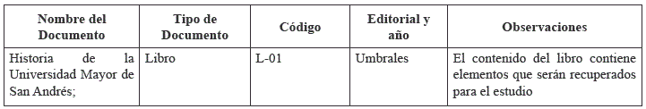 SALINAS José María; Historia de la Universidad Mayor de San Andrés; Tomo Primero; Ed. Umbrales, 1967        [ Links ]
