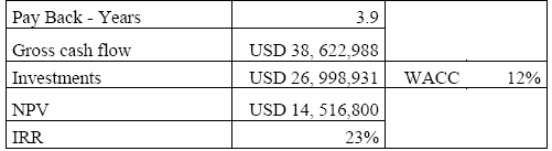 Using the data related to equipment, personnel and infrastructures, among others, the initial investment required for the implementation of the project is calculated;
