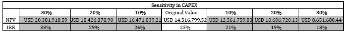 Figure 3 - Sensitivity analysis graph for CAPEX