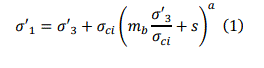 El criterio de Hoek-Brown generalizado es expresado por: