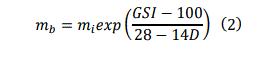 Donde mb es un valor calculado a partir de la constante del material mi con la siguiente expresión: