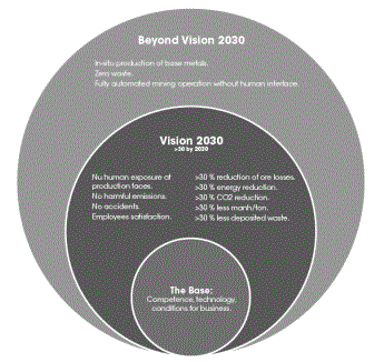 2. No human presence in the production areas. All work processes and rock characterizations are remote or automated. Special robots will be developed for safe rescue operations.