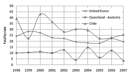 The dangerous situation in undergorund mining can be illustrated with the mining fatality rate in the United States of America, Queensland-Australia and Chile during the decade from 1998 to 2007 (Fig. 6).