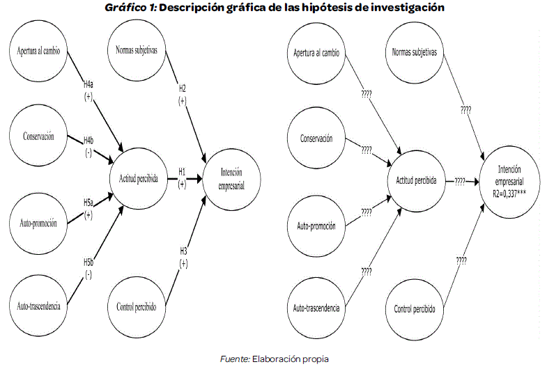De esta manera, en base a los aportes de investigaciones empíricas y las contribuciones de la Teoría de la Conducta Planificada de Icek Ajzen y la Teoría de Valores Humanos de Shalom H. Schwartz que constituyen el marco teórico de este estudio, a continuación el Gráfico 1 muestra las siguientes hipótesis: