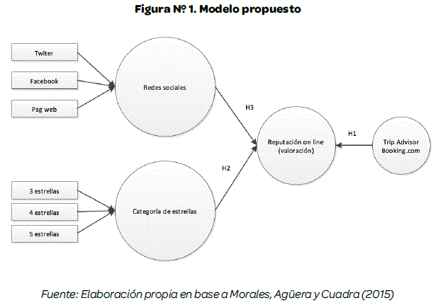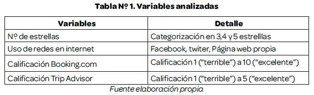 A través de estas variables se ha planteado un modelo para determinar la valoración de los hoteles a través de la calificación en los sitios web mensionados, el análisis estadístico se realizó a través de Microsoft Excel 2010 y SPSS 22.