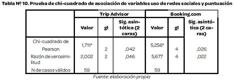 •          El uso de las redes sociales tiene una relación significativa con las puntuaciones del sitio Booking.com y el sitio TripAdvisor.