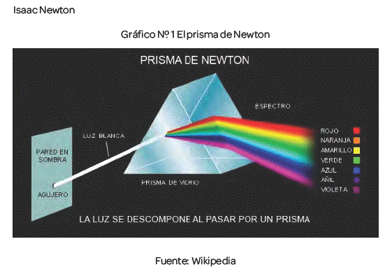 Sin luz no podríamos tener color. Isaac Newton descubrió en 1676 cuando pasó una luz blanca por un prisma, y encontró que la luz se separó en bandas continuas de color, rojo, naranja, amarillo, verde, azul índigo (añil) y violeta. (Anónimo:2008)