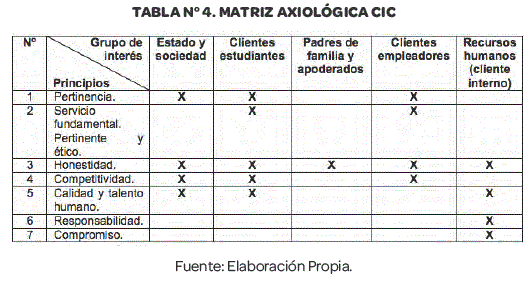 La situación anterior, denota la necesidad de contar con un modelo de gestión educativa, sustentado en valores, centrado en el servicio y satisfacción de los grupos de interés o stakeholders, que proporcione un lineamientos orientadores y un sistema de indicadores para las áreas de gestión directiva, gestión administrativa financiera, gestión académica y gestión de convivencia y comunidad. Por tanto, el modelo propuesto es un instrumento de gestión que puede ser empleado por autoridades y directivos no solo de la CIC, sino de diferentes carreras universitarias.