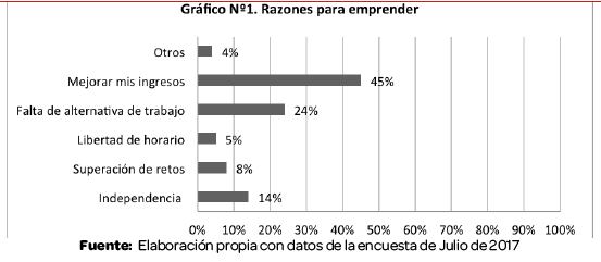 La mayoría de las comerciantes, 45%, emprende algo nuevo para mejorar sus ingresos, seguido de un 24% que lo hace por la falta de alternativas de trabajo y en menor porcentaje emprenden algo nuevo por otras alternativas. En detalle, los resultados del estudio fueron: