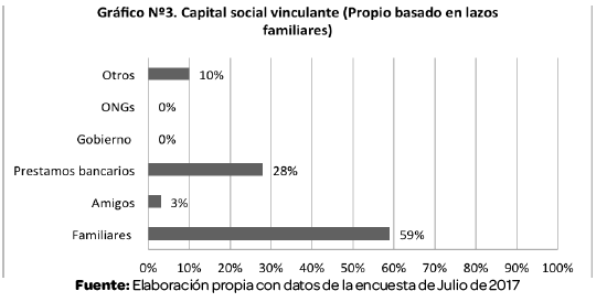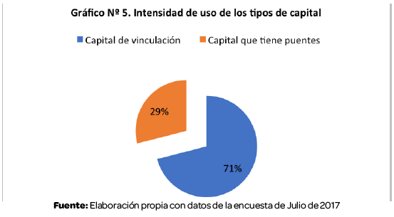 De acuerdo al análisis el capital que tiene una mayor intensidad de uso es aquel vinculante, es decir aquel basado en los lazos familiares que sobre todo apoyan a las mujeres aminorando la carga familiar. (Liñán & Santos, 2006)