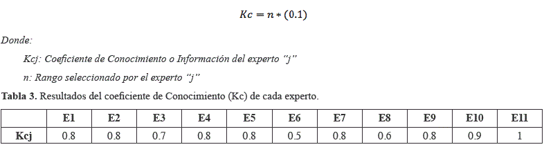 con una K = 3.8416, obteniéndose como resultado nueve (9) expertos a participar. En la tabla 1 se muestra una información general sobre las personas a seleccionar como expertos inicialmente (11 expertos).