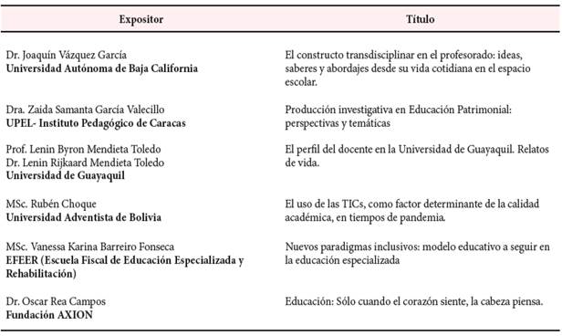 Se destaca de este encuentro académico la diversidad de posturas ante el hecho educativo y el firme propósito de contribuir con el progreso de la investigación, a través de la toma de conciencia sobre el rol activo de las comunidades científicas de las universidades en una sociedad que se encuentra bajo la incertidumbre de la pandemia por COVID-19.