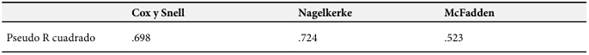 En la Tabla 6, se mostró la dependencia porcentual de en las variables personalidad y estilos de aprendizaje con el coeficiente de Nagelkerke. Este coeficiente señala que el 72.4% de la variabilidad del rendimiento académico es explicado por las variables independientes. El resto porcentual sería explicado por otras variables.