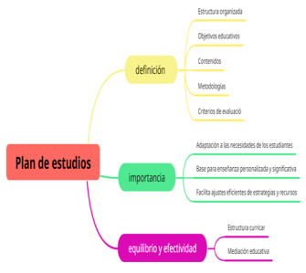El plan de estudios se configura como una estructura organizada de objetivos, contenidos, metodologías y criterios de evaluación, guiando la planificación y ejecución de la enseñanza (figura 11). Su propósito es garantizar un desarrollo educativo coherente y completo de conocimientos y habilidades. En educación primaria, debe exhibir flexibilidad para adaptarse a las diversas necesidades de los estudiantes, permitiendo una enseñanza personalizada y significativa. Facilita a los docentes el ajuste eficiente de estrategias y recursos. La efectividad del plan de estudios radica en el equilibrio entre su estructura curricular y la capacidad de adaptación a las particularidades de los educandos, consolidándose como un instrumento crucial para la mediación educativa. Si bien no se identifican teorías emergentes, se sugiere explorar enfoques que integren principios de educación inclusiva, perspectiva de género, interculturalidad, pensamiento crítico y ciudadanía global.