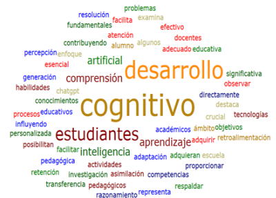 El desarrollo cognitivo, que implica procesos mentales como la atención, percepción, memoria y resolución de problemas, es fundamental para la adquisición y asimilación significativa de contenidos académicos en la escuela primaria (figura 7). Un desarrollo cognitivo adecuado facilita la comprensión, retención y transferencia de conocimientos, contribuyendo al logro de los objetivos educativos. Enfoques pedagógicos como el aprendizaje basado en competencias también se vinculan con este desarrollo, buscando que los estudiantes adquieran habilidades para la vida. Los docentes deben observar y proporcionar retroalimentación sobre el nivel cognitivo de los discentes para facilitar un aprendizaje efectivo. Además, el uso de tecnologías de IA, como ChatGPT, representa un área emergente de investigación sobre cómo respaldar el desarrollo cognitivo en el ámbito educativo a través de la adaptación personalizada de contenidos y actividades.