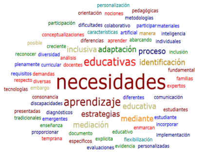 Los análisis de expertos (figura 9) revelan ideas clave sobre las necesidades educativas en la mediación educativa de la educación primaria. Estas necesidades son requisitos específicos para la participación y aprendizaje pleno, abarcando aspectos como aprendizaje, comunicación, atención e inclusión. Emergen de las características individuales de los estudiantes, como estilos de aprendizaje, dificultades, discapacidades y diferencias culturales. Reconocer estas necesidades es crucial para una educación inclusiva y de calidad, eliminando barreras. Estrategias como la personalización curricular, adaptación de contenidos, apoyos adicionales y colaboración entre docentes, orientadores y familias son clave.La identificación temprana de necesidades, mediante evaluaciones, es fundamental.