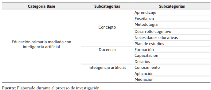 En la tabla 1, se presenta las categorías y subcategorías investigadas.