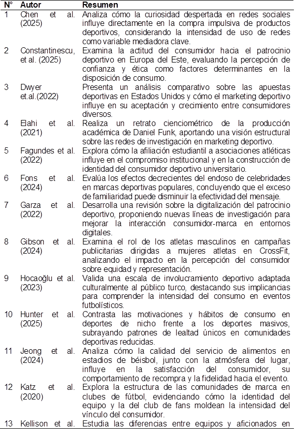 La revisión abarca publicaciones entre los años 2018 y 2025, periodo marcado por transformaciones aceleradas como la digitalización del consumo, el auge del deporte femenino, el fortalecimiento del deporte universitario y la creciente conciencia sobre el impacto social y ambiental de las organizaciones deportivas. Esta revisión no solo busca organizar el conocimiento existente, sino también ofrecer una cartografía conceptual útil para investigadores, profesionales del marketing, clubes deportivos y patrocinadores que deseen entender cómo se configura la relación entre el consumidor y la marca en el actual ecosistema deportivo. El deporte, como lenguaje universal, trasciende fronteras y conecta con la dimensión simbólica más profunda del ser humano. Comprender cómo el marketing se inserta en esta experiencia, la potencia o la tergiversa, es clave para diseñar estrategias que no solo seduzcan, sino que inspiren, transformen y generen valor colectivo.