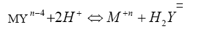 posee en total seis grupos funcionales – cuatro grupos carboxílicos y dos grupos aminos que pueden ocupar cuatro, cinco o seis posiciones de coordinación en torno de un ión metálico central. La mayoría de las valoraciones metal-EDTA se efectúan en soluciones neutras o alcalinas, la razón de ello es que los complejos metal-EDTA, aunque en general son muy estables, pueden experimentar una reacción de disociación en presencia de un ácido: