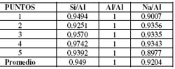 Tabla No. 4. Relaciones molares de la muestra MB2 tipo cancrinita