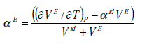 El coeficiente de expansión térmica isobárico de exceso, αE, es posible calcularlo a partir de los volúmenes de exceso a diferentes temperaturas usando la ecuación termodinámica que sigue.