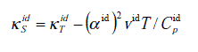 Donde la expresión para la compresibilidad isoentrópica de la mezcla ideal se deriva de la definición del coeficiente de compresibilidad isoterma KT y extendida a la idealidad [21]: