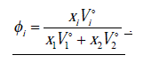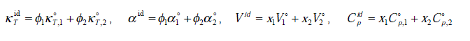 Siendo, C°p.1 y C°p.2 las capacidades caloríficas molares isobáricas de los componentes 1 y 2; x1 y x2 son las fracciones molares de los componentes 1 y 2; y φ1 y las φ2fracciones en volumen de los componentes 1 y 2, definidas por: