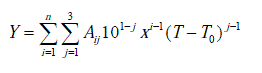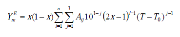 Donde Y es la propiedad, x es la fracción molar, Aij son los coeficientes de ajuste, T es la temperatura y T0 es una temperatura de referencia.