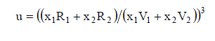 Donde Vi es el volumen molar del componente i, calculado a partir de su masa molar (Mi) y su densidad (ρi), y Ri = (Mi / ρi) u1/3