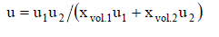 Siendo xvol.1 la fracción en volumen del componente 1.