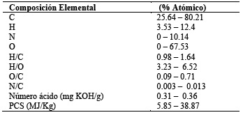 Tabla 16 Propiedades fisicoquímicas del biocrudo HTL. Elaboración propia en base a referencias [37,63]