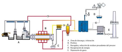 Figura 7. Esquema de una planta de pirólisis [59].