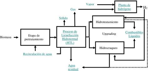 Figura 8. Esquema del proceso de conversión HTL de biomasa. Elaboración propia en base a referencia [61].