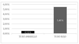 Sobre la eficacia de los tubos, se pudo observar que el tubo amarrillo es más eficaz, ya que este no sobrepasa los valores que se determinan según el registro calidad. Así se demuestra también en el artículo mencionado líneas arriba, señalando también que con el tubo amarillo con gel separador se puede medir diferentes compuestos bioquímicos. Al compararlo con nuestros resultados, vemos que el tubo amarrillo sí es eficaz13.
