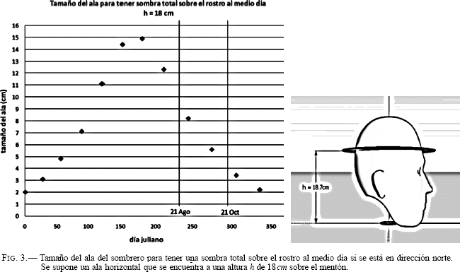 3.1. Tamaño del ala del sombrero para obtener una sombra total sobre el rostro al medio día