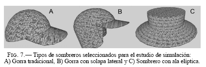 Estos sombreros fueron modelados en escala 1:1 y en tres dimensiones con ayuda del programa "Google SketchUP". En la Fig. 7 se puede apreciar una imagen que muestra estos sombreros.